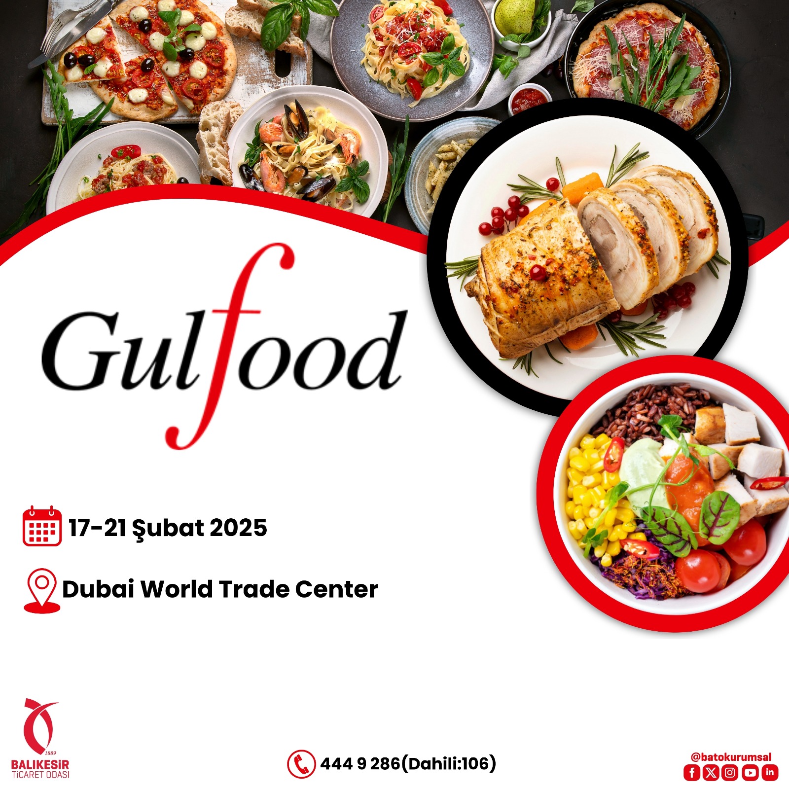 17-21 Şubat 2025 tarihlerinde Dubai’de düzenlenecek olan GULFOOD Uluslararası Gıda Fuarı için iş gezisi ve fuar ziyareti planlıyoruz.